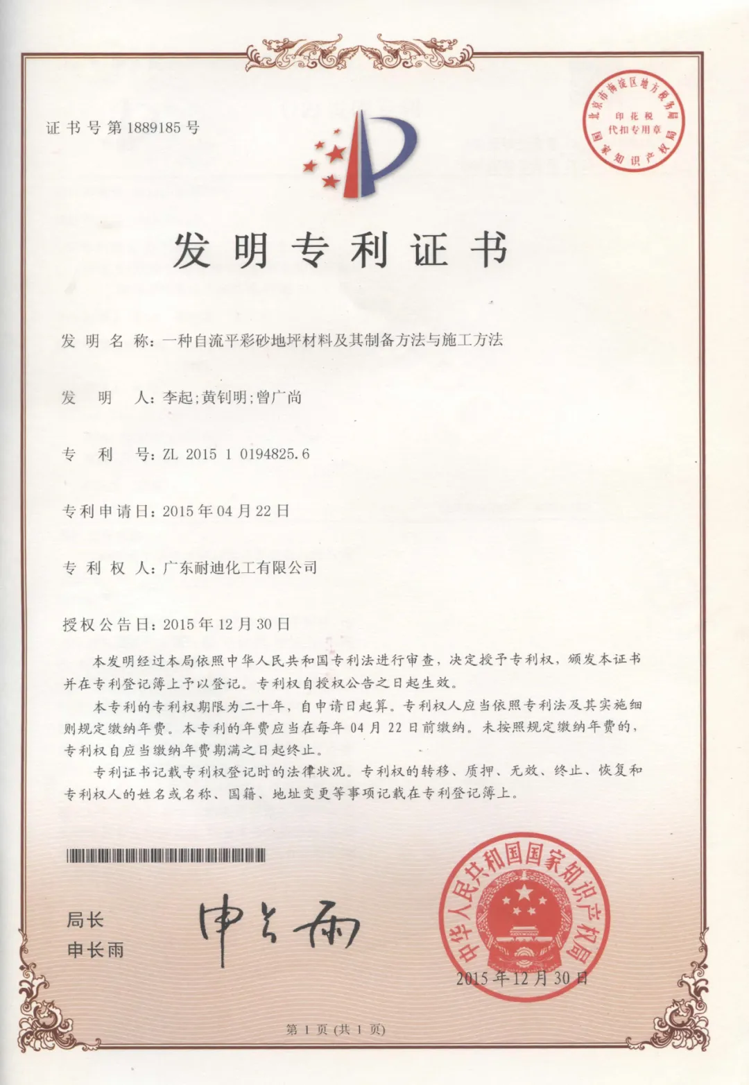 Nedis耐迪斯®自流平彩砂地坪系统 -参编标准/专利发明