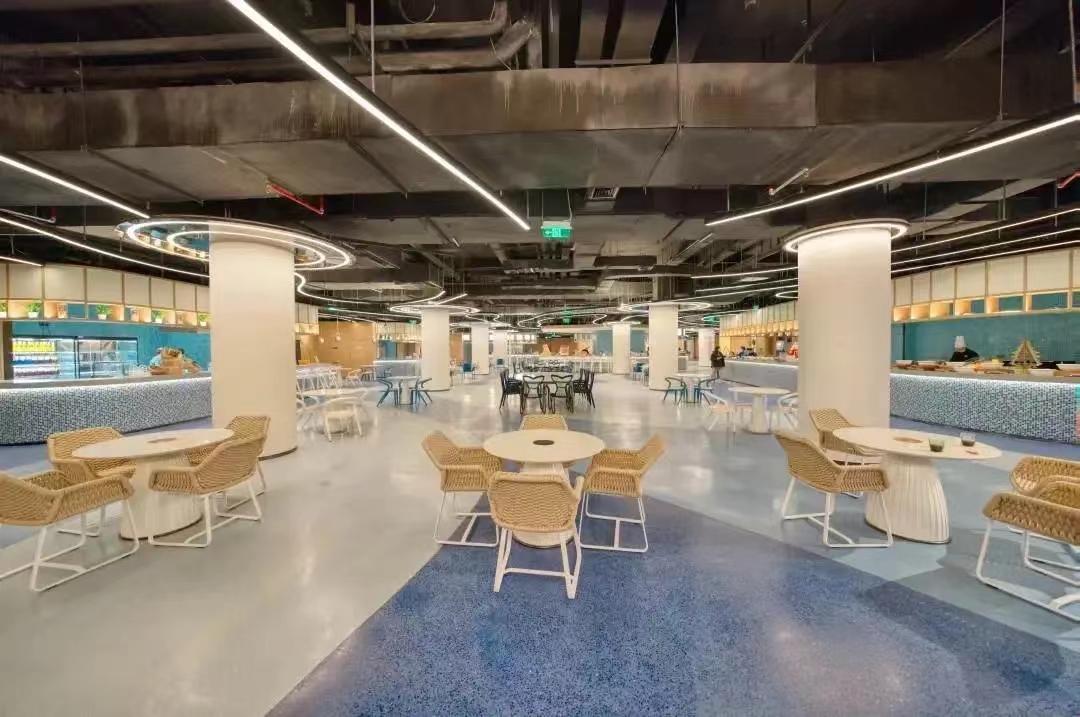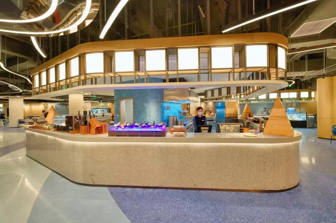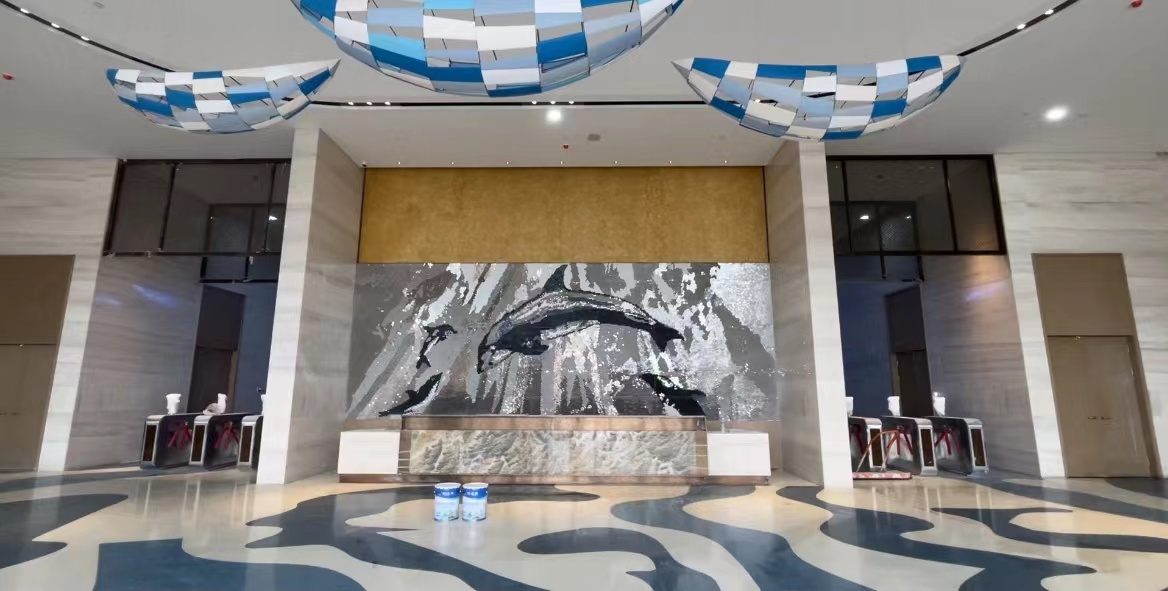 云海酒店是襄阳华侨城奇幻度假区倾力打造的五星级标准海洋主题度假酒店。酒店以海洋主题为核心,倡导人与自然交融共生的理念,匠心打造沉浸式海洋度假体验为营造优雅舒适的入住体验。在大堂及公共区域采用了耐迪斯环氧磨石地坪。该地坪凭借其丰富的艺术表现力、卓越的耐磨耐用性能以及绿色环保特点,与酒店的奢华氛围融为一体,为宾客打造出赏心悦目的地面景观。