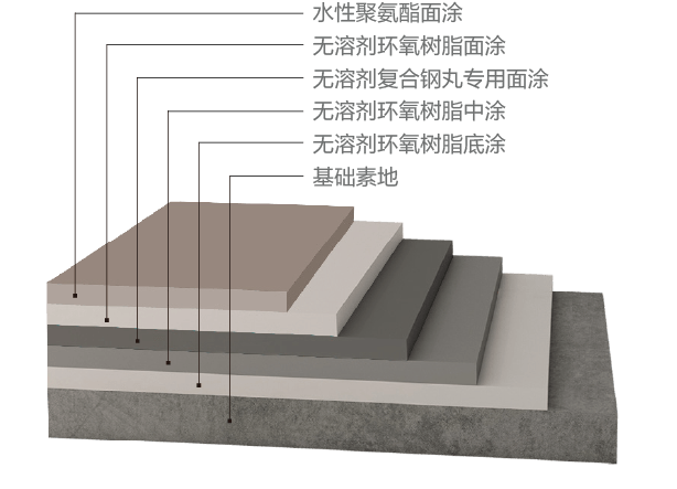 无溶剂环氧复合钢丸地坪是以不锈钢钢丸作为骨料配合环氧地坪涂料使用,用于重载型工业厂房能有效抵御叉车碾压及尼龙橡胶轮对地面的刮伤,用于停车场能有效提高耐磨损性能,使停车场转弯位及上下坡缓冲区得到有效保护,提升环氧地坪抗压、耐磨、抗冲击性能,并具有一定的防滑功能。